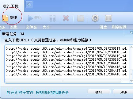 2.打開(kāi)下載工具,如:迅雷,新建任務(wù)-把下載地址粘貼進(jìn)去,開(kāi)始下載。(因?yàn)檫@樣下載課程名全是數(shù)字看不明白講的是什么內(nèi)容,所以前面我們要保存課程列表)