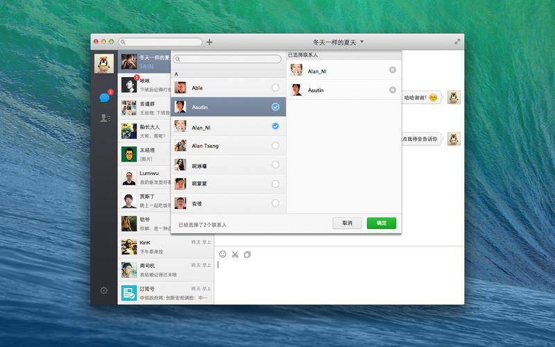 登錄以后,就可以看到微信Mac版的界面了。