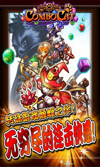 《Combo Cat》是一款融合各種文化的一款游戲,包邏萬象諸如:西洋、幻想、中國、日本、貓與龍的各類背景設(shè)定。這款游戲希望帶給玩家開心冒險(xiǎn)的感受,透過輕鬆舒壓、RPG類型的游戲體驗(yàn),讓喜好轉(zhuǎn)珠類寶石消去、愛貓族群的玩家們,可以在這款游戲中找到游戲的樂趣。