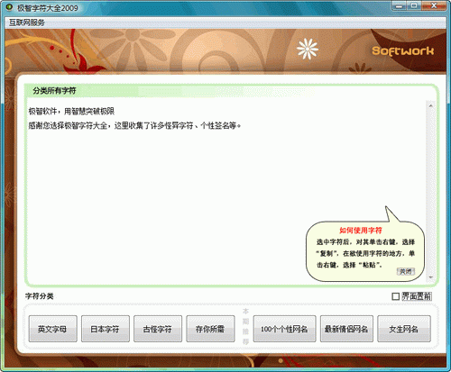 它收集了諸多特殊字符、個性簽名、個性名稱等內(nèi)容