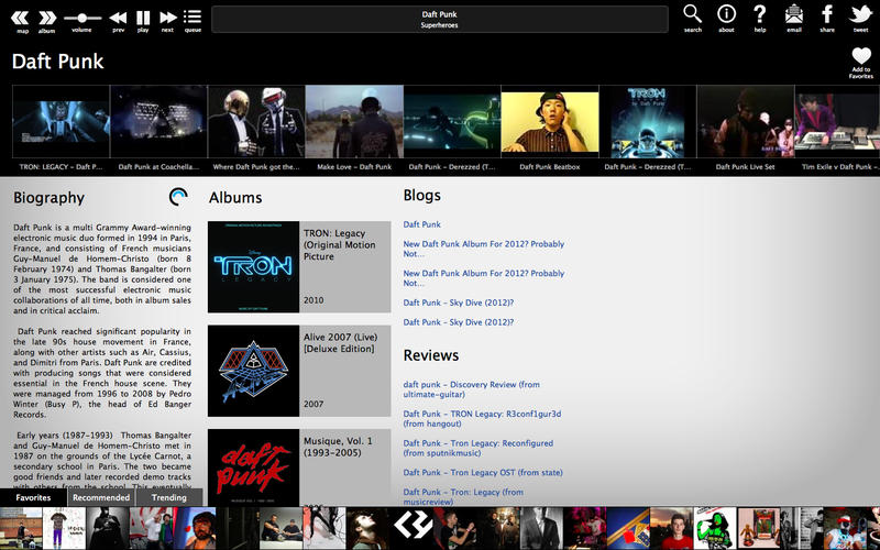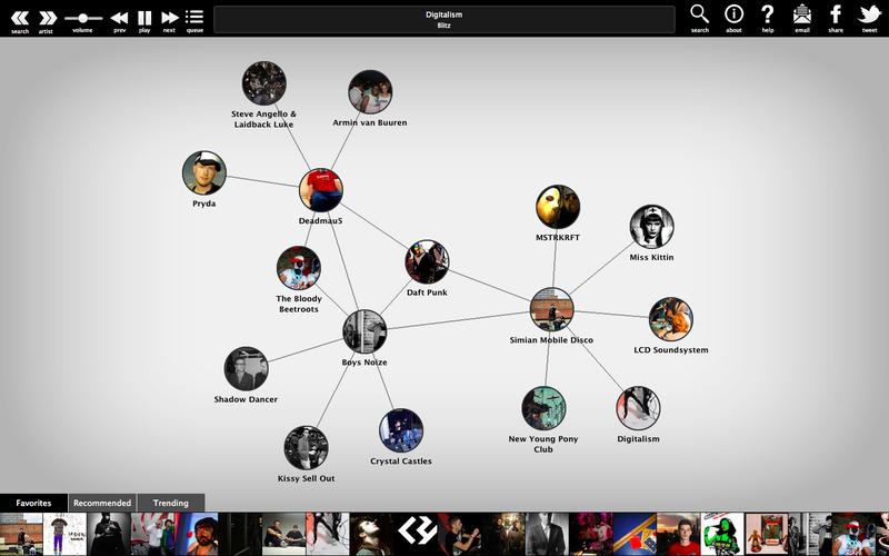 當你發(fā)現(xiàn)一個你喜歡的樂隊或歌手時,你可以通過Twitter或Facebook與朋友共享,或者把他們保存到你的收藏夾中。
