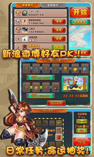 游戲有自己漫畫(huà)故事引導(dǎo)貫穿的故事模式,整個(gè)故事在每關(guān)的開(kāi)啟會(huì)一步一步的解開(kāi)整個(gè)主人公穿越三國(guó)的秘密和撲朔迷離的緊張環(huán)節(jié)。讓玩家可以在緊張刺激的故事關(guān)卡結(jié)束后更加迫不及待的開(kāi)啟下一個(gè)故事關(guān)卡。