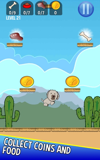 狗蛋的快樂之旅安卓版是一款卡通風(fēng)格的休閑游戲,玩法非常的簡單,玩家只需控制可愛的狗蛋不斷的向上跳躍,獲得沿路的金幣和食物,到達(dá)勝利的終點(diǎn)即可過關(guān)。