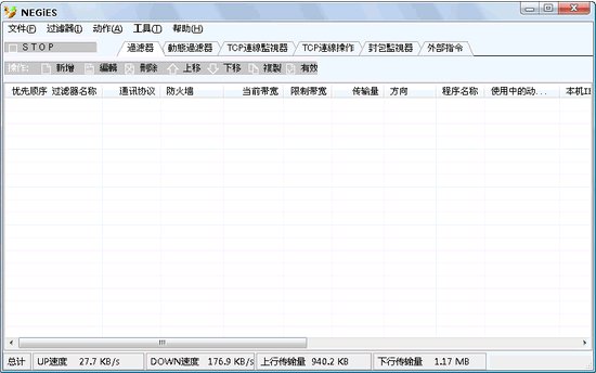NEGiES 是一款小巧(壓縮包不足 300 KB)、免費(fèi)、綠色但是卻功能強(qiáng)大的網(wǎng)絡(luò)流量監(jiān)控管理軟件。它能夠單獨(dú)限制每個(gè)應(yīng)用程序的流量,并實(shí)時(shí)動(dòng)態(tài)測(cè)量上傳下載的速度、時(shí)間和數(shù)據(jù)量。只需簡(jiǎn)單的設(shè)置,NEGiES 便可方便的管理網(wǎng)絡(luò)流量,相對(duì)于其他網(wǎng)絡(luò)流量監(jiān)控軟件而言,其小巧、免費(fèi)、綠色的特性更顯得突出。無(wú)奈下載的版本都是繁體中文的,在簡(jiǎn)體中文的系統(tǒng)上無(wú)法正常顯示。因此幾經(jīng)周折聯(lián)系上了將 NEGiES 繁體中文化的 rexx @ PTT,在 rexx 的熱心幫助下終于草草完成了這個(gè) NEGiES 的簡(jiǎn)體中文版本