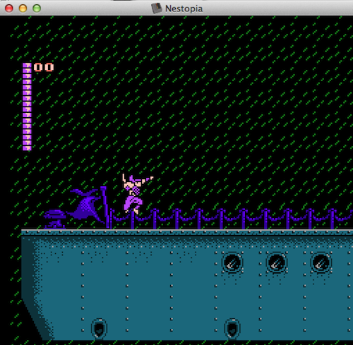 NATSUME公司在紅白機(jī)時代推出了一款清版過關(guān)游戲。Kage的游戲方式直截了當(dāng),主角雖然不能在墻壁上跳來彈去,卻能用鉤子直接翻上天花板——這一設(shè)定為后來的所借用。 游戲不僅音樂很酷,音效也很到位,尤其是每次攻擊時所發(fā)出的"HA!"聲(通過數(shù)字采樣),讓人很濕。新增的雙打模式讓你有了與朋友協(xié)作的樂趣。