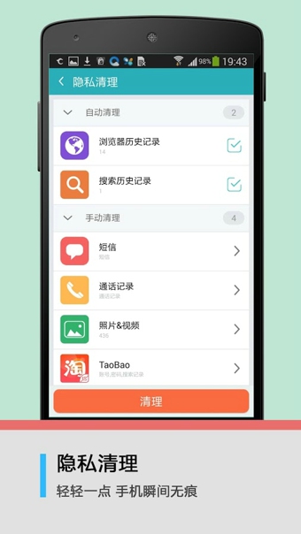 4、隱私清理:體貼的隱私管理,瞬間即可讓手機無痕。