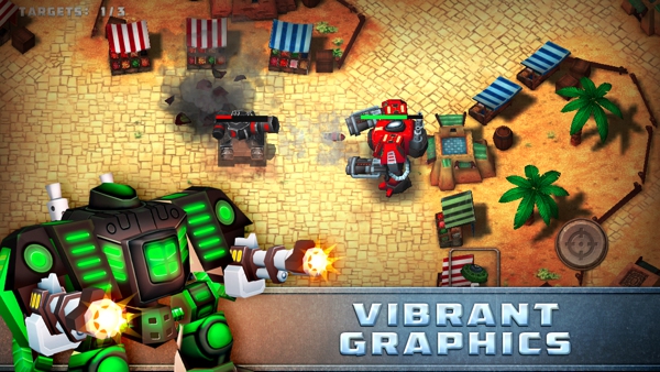 大多數(shù)平板動作游戲的操作都是運用虛擬搖桿來讓玩家體驗游戲。本作也不例外,標(biāo)準(zhǔn)的左鍵移動右鍵射擊讓玩家們不必?fù)?dān)心看不懂英文而不會操作游戲。游戲中還增設(shè)了道具欄位,玩家可以在游戲中購買道具并點擊使用,十分方便。相比之下一款名為《M2神甲戰(zhàn)紀(jì)》的機甲游戲在操作上就比較復(fù)雜,除了不同攻擊外,還加入了技能系統(tǒng)。不得不說,在對比中本作雖然簡單但是內(nèi)容就有些單調(diào)了。