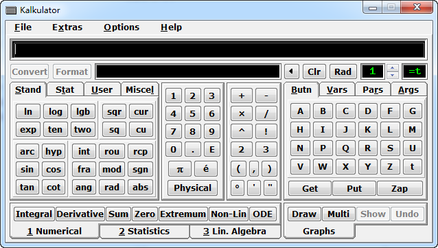 科學(xué)計(jì)算器Kalkulator提供了許多物理學(xué)中常用的標(biāo)準(zhǔn)常量,你可以在精密的科學(xué)計(jì)算中直接引用值??煞謩e進(jìn)行數(shù)字運(yùn)算、線性代數(shù)運(yùn)算及統(tǒng)計(jì)運(yùn)算。支持二進(jìn)制、十進(jìn)制、八進(jìn)制、十六進(jìn)制及進(jìn)制間的轉(zhuǎn)換。