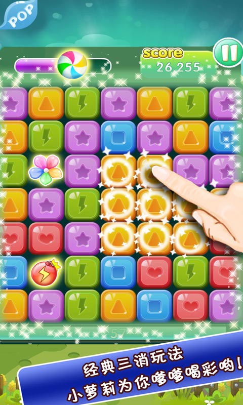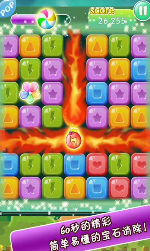 1、經(jīng)典三消玩法 小蘿莉為你嗲嗲喝彩2、60秒的精彩 簡單易懂的寶石消除