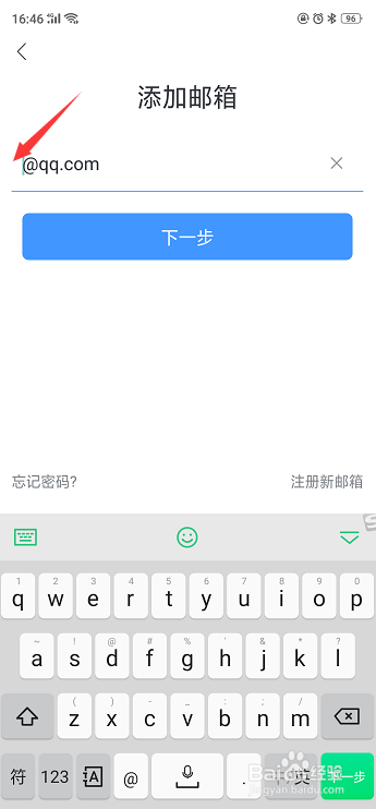 在這里輸入你要添加的郵箱號(hào)碼。這里小編添加的是個(gè)人郵箱
