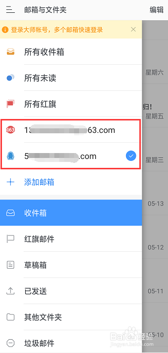 在這里我們就可以隨意的切換已經(jīng)添加上的郵箱了。不用再輸入郵箱號(hào)和密碼那么繁瑣了
