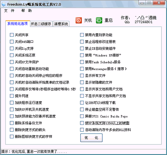 注意: “一鍵完成”里不含“加鎖,解鎖注冊表” 和 “恢復快捷方式的箭頭”