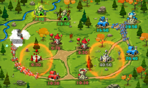 戰(zhàn)爭對抗安卓版是一款策略戰(zhàn)爭游戲。游戲畫面上,卡通風格十足,人物造型也有些自己的特色。游戲中你會和你的對手出生在地圖中的兩個點位,你們有各自的大本營,大本營的數字代表當前人口之值和最多人口值,大本營會不斷的生產軍隊,而你要做的就是出兵占領并消滅敵人的大本營。【戰(zhàn)爭對抗攻略】
