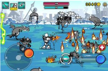 卡通戰(zhàn)爭采用了虛擬按鍵的操作方式。整體的操作手感還是比較不錯的,缺點是方向的虛擬按鍵沒有采用手指追蹤功能,所以可操作范圍會比較小,需要適應(yīng)。另外在每一關(guān)里下滅敵人都有金錢和魔力獲得,金錢用于觀后升級購買武器和強(qiáng)化自身,魔力用于在關(guān)卡內(nèi)使用技能。