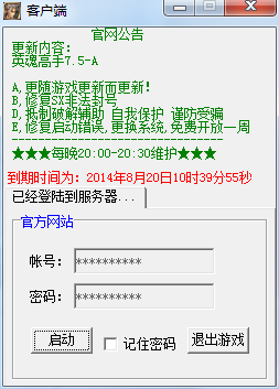 英魂高手7.5-AA,更隨游戲更新而更新!B,修復(fù)SX非法封號D,抵制破解輔助 自我保護 謹防受騙E,修復(fù)啟動錯誤,更換系統(tǒng),免費開放一周