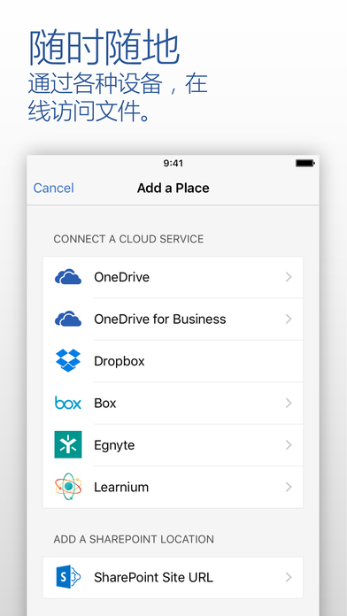 云–使用手機(jī),您可以訪問(wèn)存儲(chǔ)在OneDrive、OneDriveforBusiness或SharePoint上的文檔。