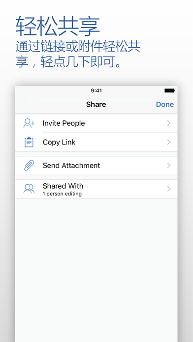 共享–完成編輯或批注后,只需通過(guò)電子郵件發(fā)送文檔,或?qū)⑵浔4嬷罯neDrive或SharePoint即可。