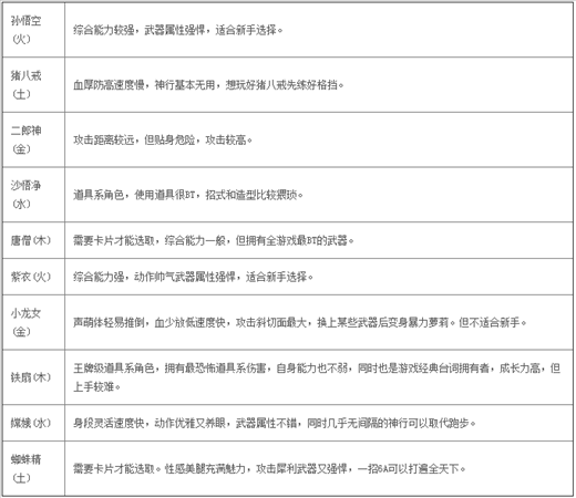 在西游記中有5個(gè)人物可以選擇,分別為孫悟空、豬八戒、龍馬、龍女、沙悟凈,他們每個(gè)人都有著各自的特點(diǎn),下面一一對(duì)其說明,多了解一下他們的特性,我想對(duì)您來說是很有必要的。
