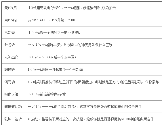 西游記釋厄傳2出招表:乾坤波動(dòng)功:←↙↓↘→←→+A