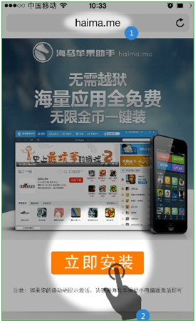 海馬蘋果助手iPhone版不僅不需要賬號,還可以免費(fèi)下載正版蘋果軟件。下面給大家?guī)砗qR蘋果助手使用教程第一步:我們用iPhone上的Safari打開海馬蘋果助手的網(wǎng)站,根據(jù)提示點(diǎn)擊下載: