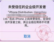 這是由于iOS 9系統(tǒng)限制,安裝APP之后直接打開,系統(tǒng)會提示“未受信任的企業(yè)級開發(fā)者”,為了正常使用此APP,需要用戶去手動信任開發(fā)者的證書。