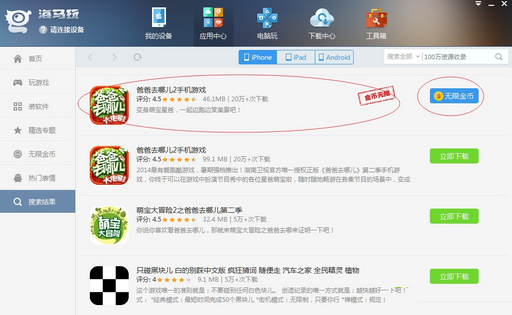 如何用海馬蘋果助手下載破解版游戲?