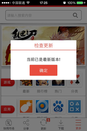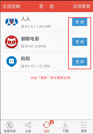 快用啟動時會檢查應(yīng)用是否為最新版本,如果不是最新版本應(yīng)用將會顯示在更新列表中