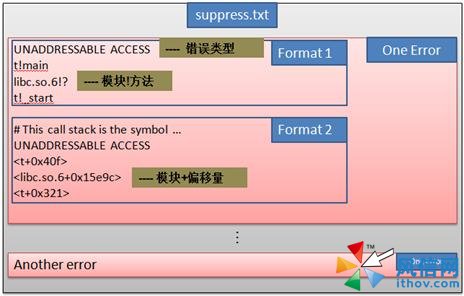 每次運(yùn)行 DrMemory 時(shí),它會(huì)產(chǎn)生一個(gè) suppress 文件,和 result 文件放在一起。該文件的格式如下:
