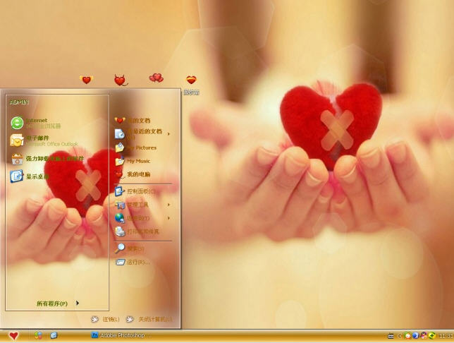 無法彌補電腦主題是一款非常好看的電腦主題工具,以美女的手心捧著一顆被撕裂的心為背景,看上去有些心痛的感覺,看到它,你是否會想起什么呢,靜靜的回憶。