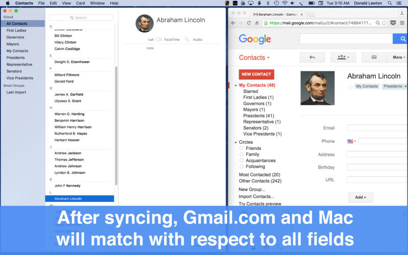 在初始同步,匹配的Gmail和Mac通訊錄中的內(nèi)容會(huì)被相互結(jié)合