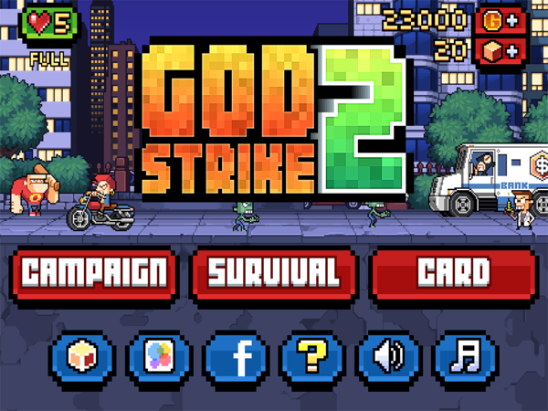 《上帝的懲罰2God Strike 2》是由Magic Cube公司制作并發(fā)行的,游戲基本上延續(xù)了前作的風(fēng)格,街機(jī)風(fēng)格的2D畫面,其中還帶有一些像素元素,閃電效果也是非??鋸?,也是為了更加爽快的懲罰那些壞蛋。游戲的音樂節(jié)奏比較輕快,聽起來讓人神清氣爽。游戲當(dāng)中準(zhǔn)備了多種人物供玩家選擇,從雷神到上帝,每一個(gè)人物都有一個(gè)專屬的技能,利用專屬技能可以更快的清除屏幕中的惡霸們。游戲的操作方式并不復(fù)雜,采用的是典型的觸屏手勢(shì)方式,不過由于每個(gè)人的技能不同,釋放的操作在細(xì)節(jié)上也會(huì)稍有不同。隨著游戲的進(jìn)展,玩家可以解鎖人物,當(dāng)解鎖后會(huì)有詳細(xì)介紹人物的專屬技能以及操作方式,玩家并不用擔(dān)心面對(duì)新人物會(huì)手足無措。