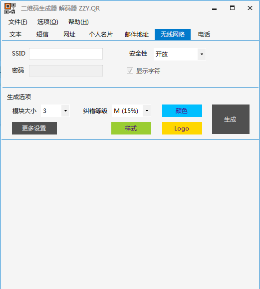 按照生成類別做了分類,包括文本、短信、網(wǎng)址、名片、郵件、WIFI、電話
