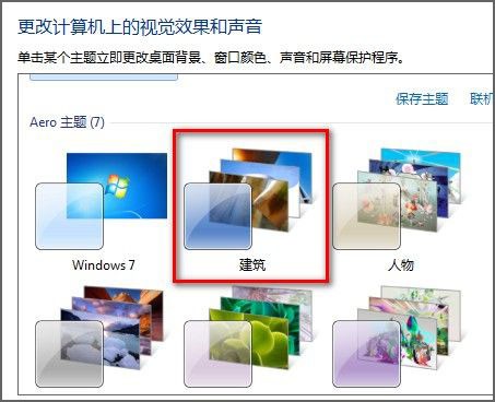 2,在“更改計算機上的視覺和聲音”中選擇系統(tǒng)主題。單擊可以預覽。
