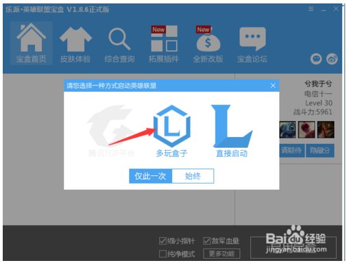 4、點擊啟動游戲的方式,用lol盒子啟動。注意!樂派英雄聯(lián)盟盒子并沒有戰(zhàn)斗力和段位信息。