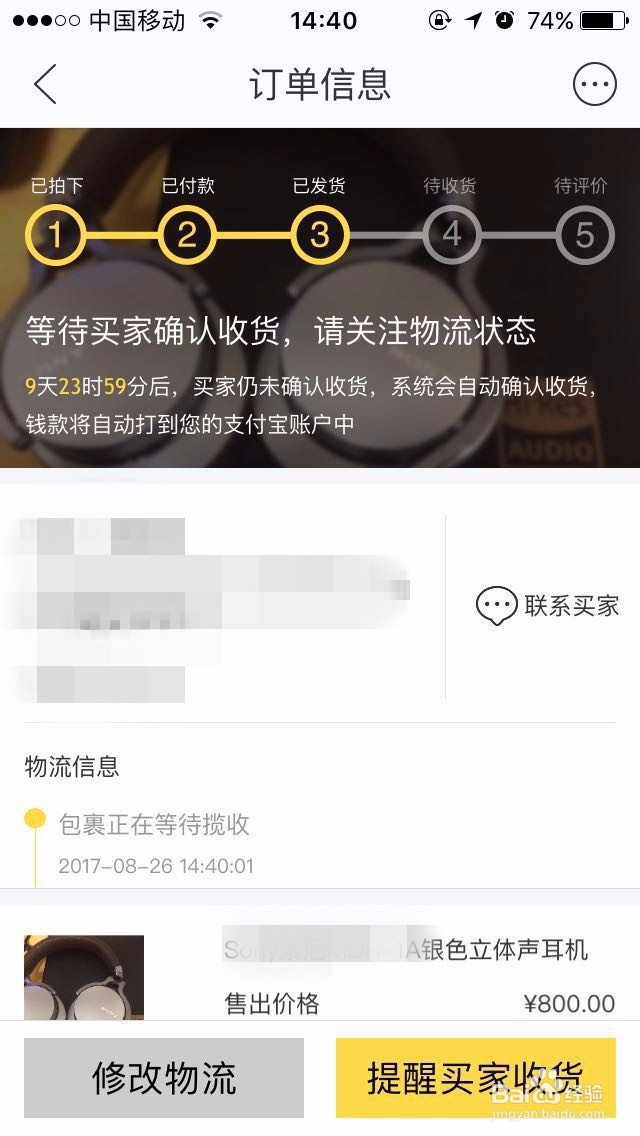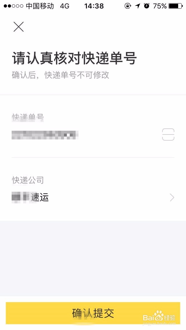 請(qǐng)輸入快遞公司和單號(hào),注意請(qǐng)核對(duì),這個(gè)只有一次輸入機(jī)會(huì),不要輸入錯(cuò)誤。確認(rèn)后即可發(fā)現(xiàn)進(jìn)度變?yōu)榈却I(mǎi)家收貨。這時(shí)候賣(mài)家工作就基本完成了。等待買(mǎi)家收貨后即可完成交易。