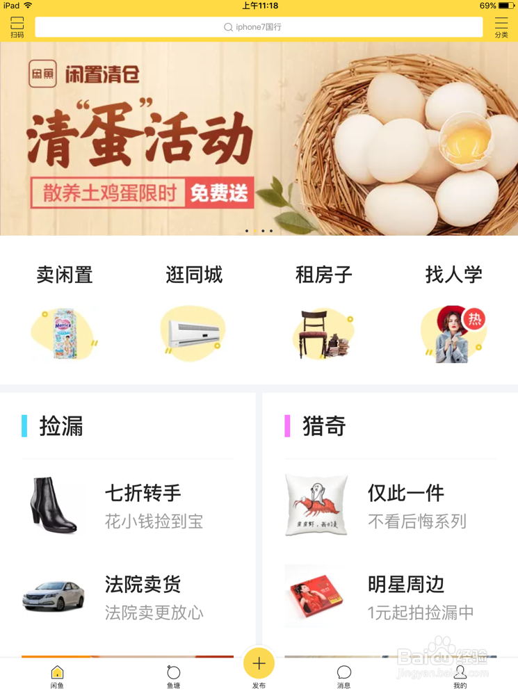 閑魚(yú)怎么私聊賣(mài)家?首先,我們打開(kāi)閑魚(yú)app,首頁(yè)大家應(yīng)該都不陌生,如圖所示