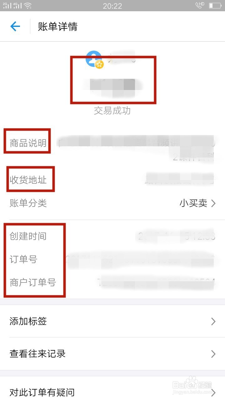 賬單詳情頁(yè)面顯示此項(xiàng)閑魚(yú)交易的商品說(shuō)明、訂單號(hào)、創(chuàng)建時(shí)間、金額等信息。