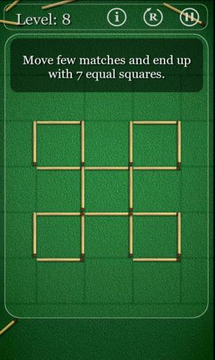 規(guī)則很簡單:通過移動(dòng),移除,或者增加火柴來為每個(gè)圖形尋找到解決方案。