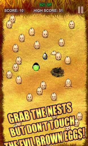 一窩正常的棕色雞蛋里出現了一只雪白的雞蛋,意料之中的是無辜的白蛋處處受到排擠。這是個類似丑小鴨的故事,不同的是丑小鴨是因為太丑,而白蛋則是因為太白而受到棕色雞蛋的嫉妒。evil brown eggs 《邪惡的棕色雞蛋》是一款頗有難度的休閑小游戲,玩家需要操縱白蛋在諸多棕蛋的圍攻下找到賴以棲身的雞窩,這個過程需要小心棕蛋的自殺式攻擊。