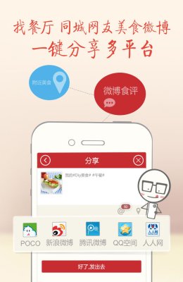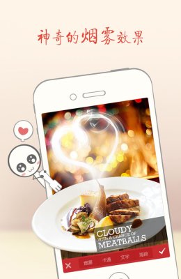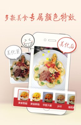 1、拍美食! 手機(jī)上最好的美食照片顏色濾鏡,各種美食裝飾及趣味相框,更有獨(dú)一無(wú)二的美食煙霧效果, 讓你的美食照片變得好看有趣!2、發(fā)微博!一鍵將美食圖片分享到POCO、新浪、騰訊微博等多個(gè)平臺(tái) ,更可讓您的微博上直接出現(xiàn)餐廳信息和介紹,吸引更多粉絲的關(guān)注!