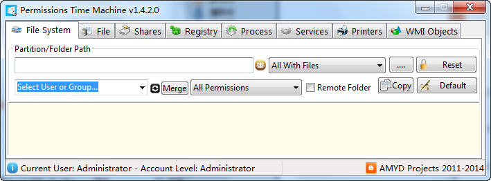 Permissions Time Machine 支持文件夾、文件、共享、注冊表、進程等多種類型的權(quán)限設(shè)置,下面就以設(shè)置文件夾為例,其余的也是一樣的操作。【使用方法】