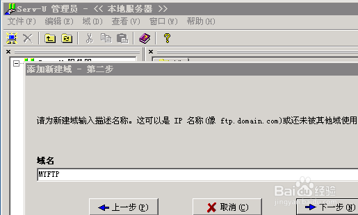 我們點是,來創(chuàng)建新域,輸入你分配給FTP的域名,然后勾選啟用域,然后點下一步,如下圖所示: