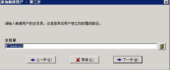 注:如果選中鎖定用戶至根目錄后則此根目錄的權(quán)限決定了 根目錄下所有目錄的權(quán)限。如果根目錄下有不同的目錄,不同的目錄有不同的權(quán)限的話,請勿選中鎖定用戶至根目錄。