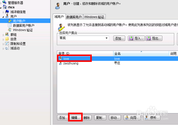 選中用戶,點擊編輯按鈕,如下圖: