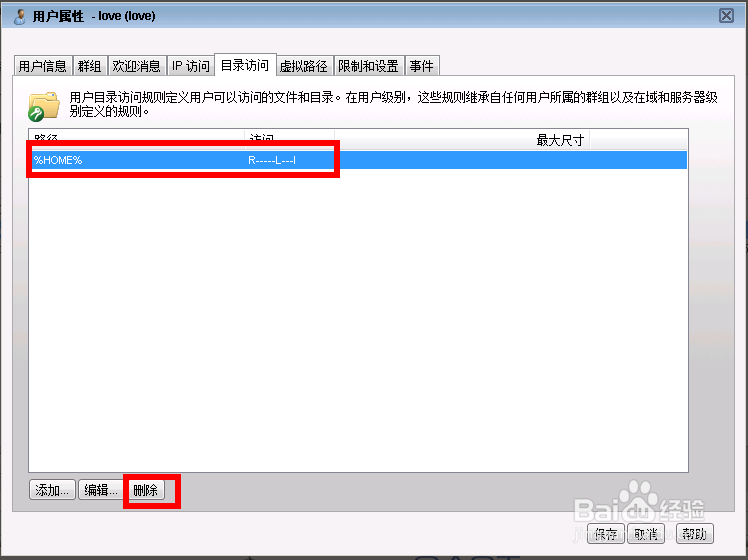 選中home路徑,點擊刪除按鈕。刪除home路徑。