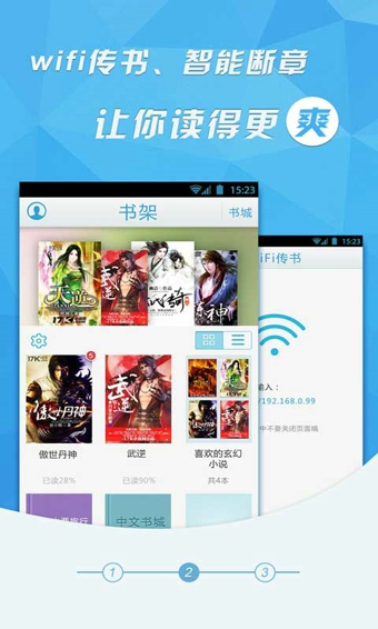 中文書(shū)城作品內(nèi)容囊括玄幻、都市、歷史、軍事、女性、言情、靈異、驚悚、社科、教育等分類(lèi),內(nèi)置的手機(jī)閱讀器可實(shí)現(xiàn)離線下載閱讀、仿真翻頁(yè)、夜間模式等貼心功能,新增加的wifi傳書(shū)功能,更可以讓您和朋友一起免費(fèi)分享精彩小說(shuō),給您帶來(lái)更多樂(lè)趣。