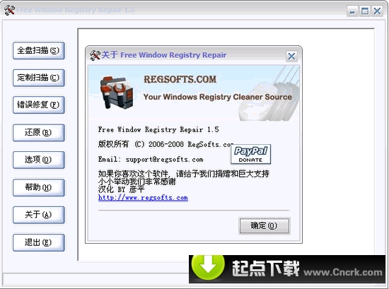 Free Window Registry Repair V2.0 漢化綠色特別版 簡單明了的一個注冊表修復清理免費軟件,界面簡潔明快, 功能上也是簡單明了,常用功能也非常齊備,掃描速度也非 常的快,軟件提供了定制掃描功能,掃描時可以忽略用戶指定的注冊表分支,修復錯誤后也可以隨時選擇某次操作的備份文件進行還原操作,同時也提供了修復之前創(chuàng)建系統(tǒng)還原點的選項(XP)。根據(jù)作者提供的說明,該軟件可以在微軟的所有 Windows 操作系統(tǒng)中運行