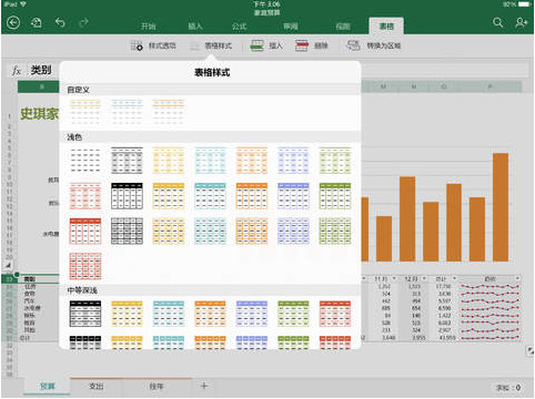 Excel 電子表格外觀精美,效果媲美 PC 或 Mac。