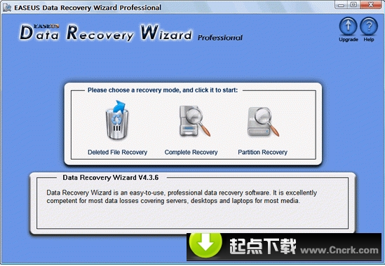 Data Recovery Wizard Pro V4.3.6 英文綠色特別版 EASEUS Data Recovery Wizard功能強(qiáng)大,簡單易用,提供了3種數(shù)據(jù)恢復(fù)模式:已刪除文件恢復(fù)、完整恢復(fù)、分區(qū)恢復(fù)。“已刪除文件恢復(fù)”模式適用于誤刪文件或誤清空回收站的情況;“完整恢復(fù)”模式適用于磁盤格式化、文件系統(tǒng)崩潰或磁盤盤符丟失情況下的數(shù)據(jù)恢復(fù);“分區(qū)恢復(fù)”模式適用于分區(qū)丟失情況下的恢復(fù)