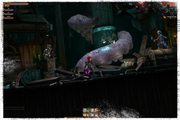《魔界村Online》是以日本卡普空公司在1985年推出的街機(jī)游戲(arcade game)《魔界村》為藍(lán)本制作的網(wǎng)絡(luò)游戲,具有與主機(jī)游戲媲美的動(dòng)作性。《魔界村Online》中的戰(zhàn)斗并不是反復(fù)使用一個(gè)單純技能地進(jìn)行,而是結(jié)合了利用時(shí)間差的連續(xù)技攻擊、把敵人投向空中或摔在地面、格擋等多種要素,以提供逼真的動(dòng)作樂(lè)趣。并且,游戲內(nèi)動(dòng)態(tài)的副本也是引人注目,如副本里的畫面會(huì)左右傾斜,或者副本有破碎的效果等。
